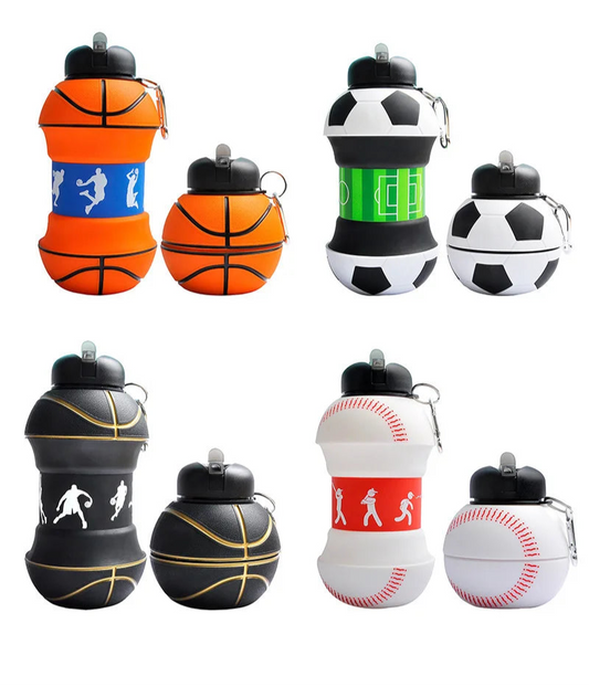 Kids Foldable Sports Water Bottle – Basketball/Football Design, Leakproof & Portable